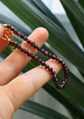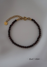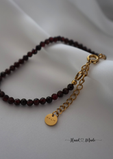 - Edelstahl 18k vergoldet, natürliche dunkelrote Granatperlen