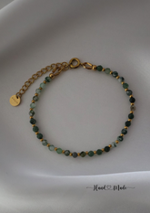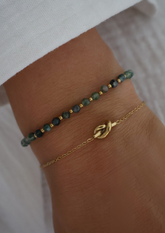 Stainless steel 18k gold plated, dark green moss agate beads